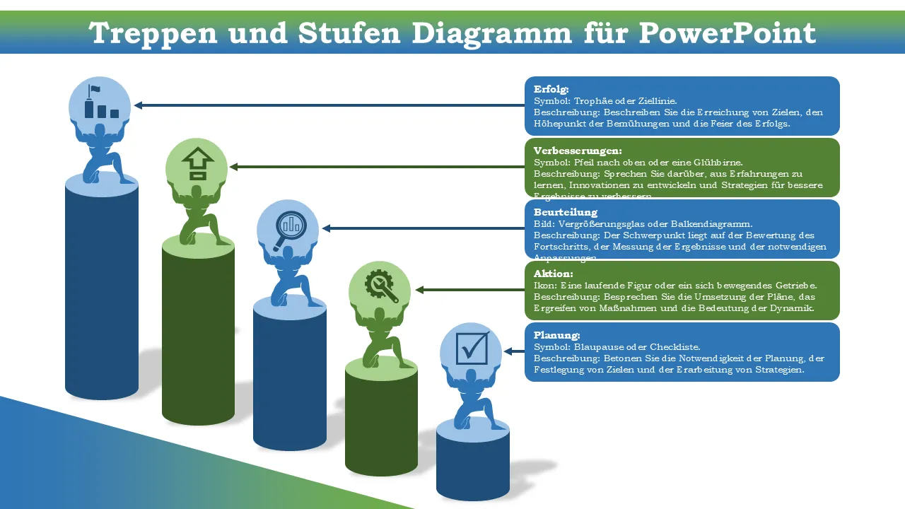 Ein visuell ansprechendes StairsSteps-Diagramm für PowerPoint, das für die klare Darstellung von Daten, Prozessen und Schlüsselkennzahlen entwickelt wurde. Perfekt für Präsentationen von Geschäftsstrategien, Kundenvorschlägen und Teambesprechungen. Vollständig editierbar und druckfertig.