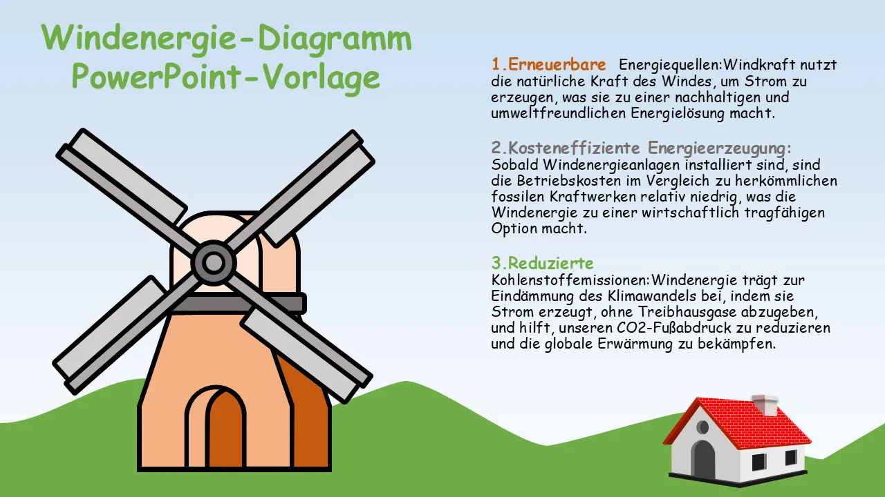 A visually engaging Wind Power Diagram Powerpoint Template designed for presenting data, processes, and key metrics with clarity. Perfekt für Präsentationen von Geschäftsstrategien, Kundenvorschlägen und Teambesprechungen. Vollständig editierbar und druckfertig.