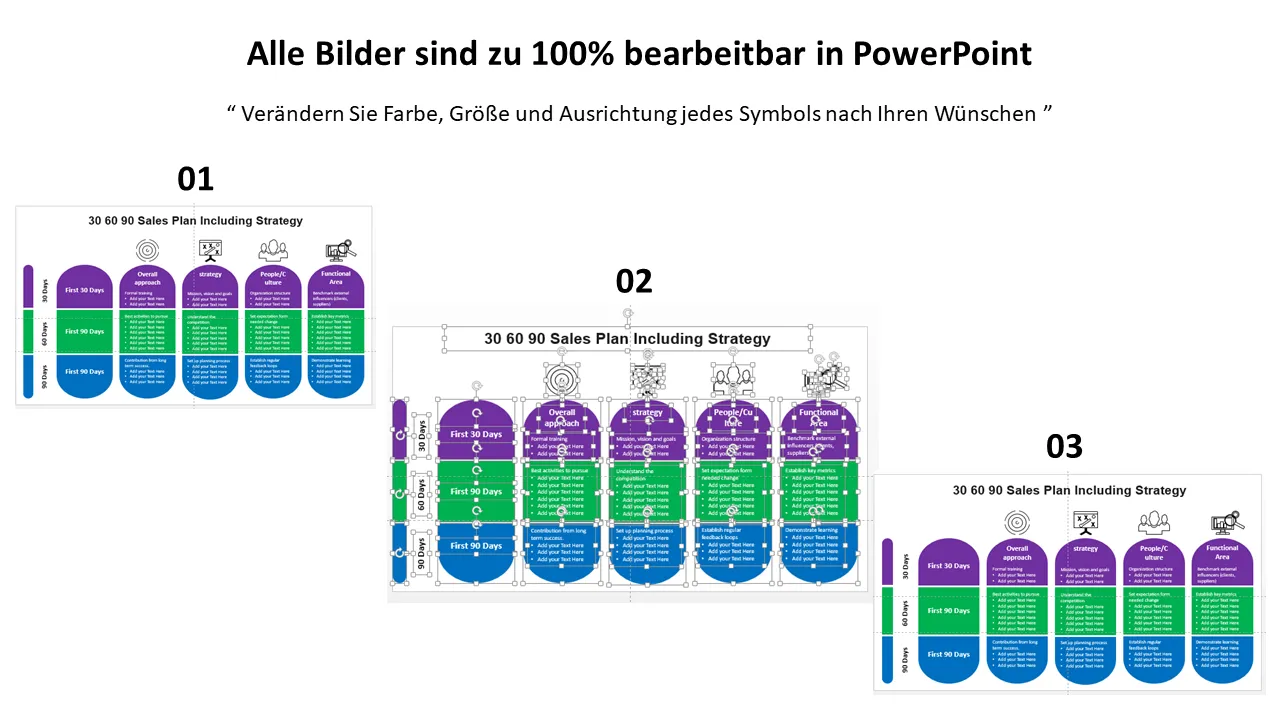 PowerPoint-Vorlage „30 60 90 Vertriebsstrategie-Roadmap“