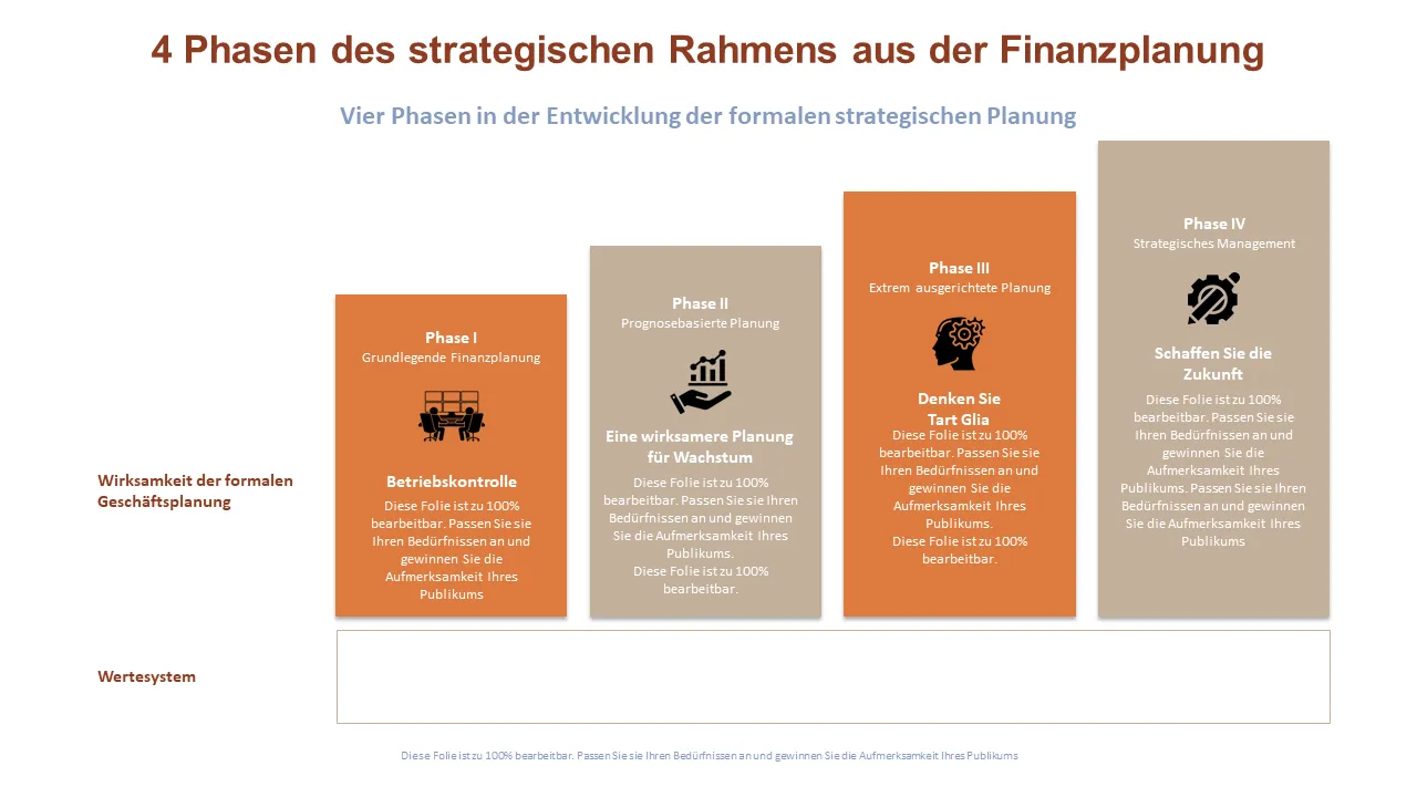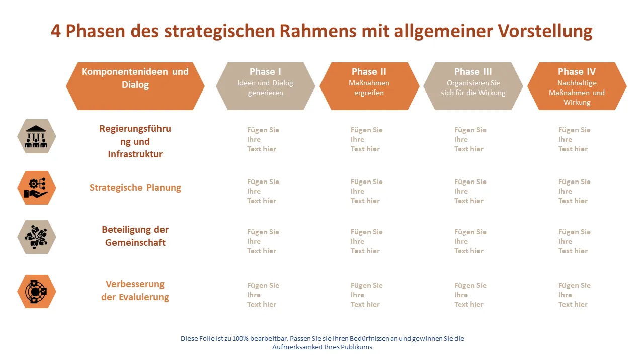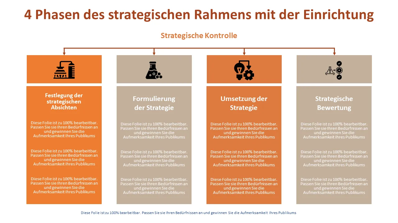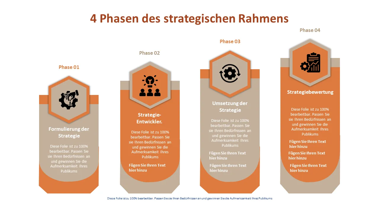 PowerPoint-Vorlage für ein 4-Phasen-Strategieimplementierungsrahmen