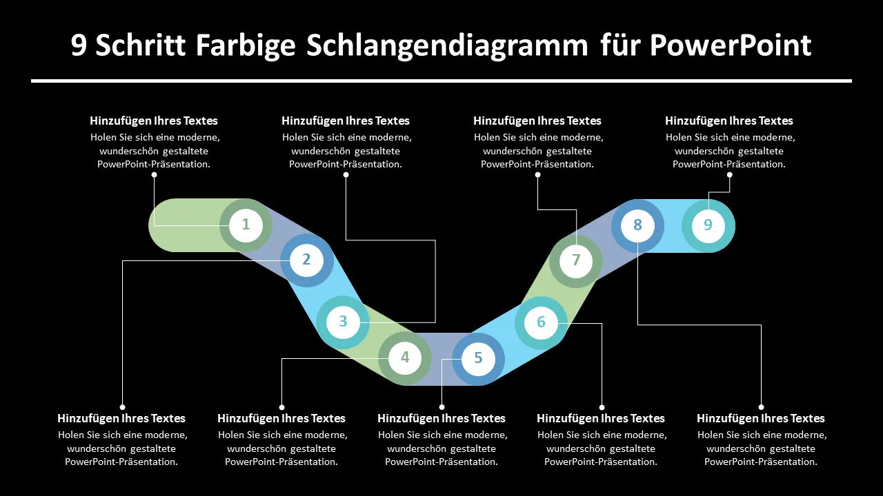 Erläuterung der 9-stufigen farbenfrohen Schlangendiagramm-PowerPoint-Vorlage