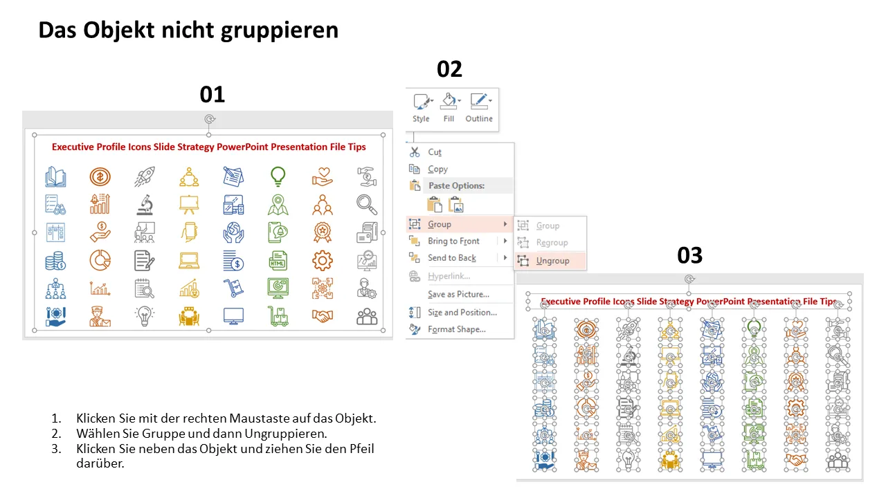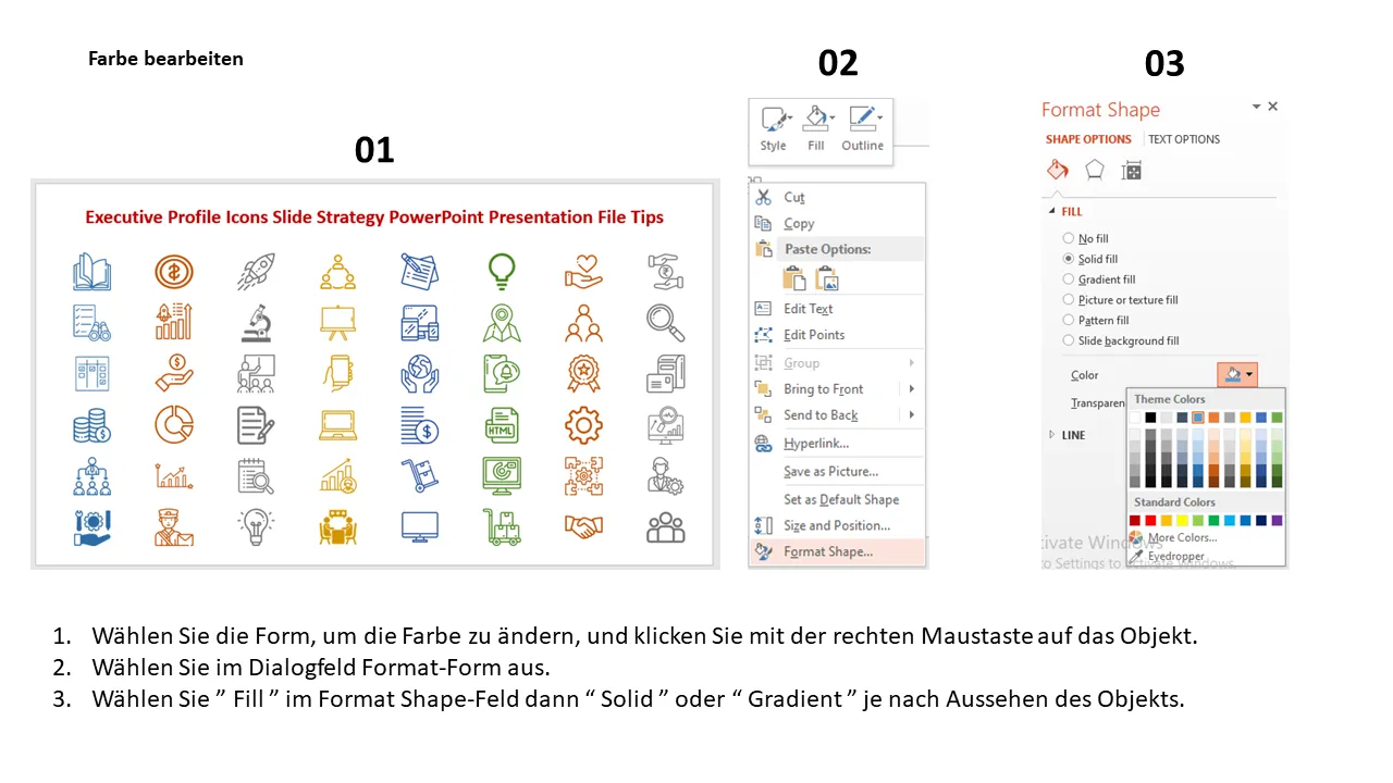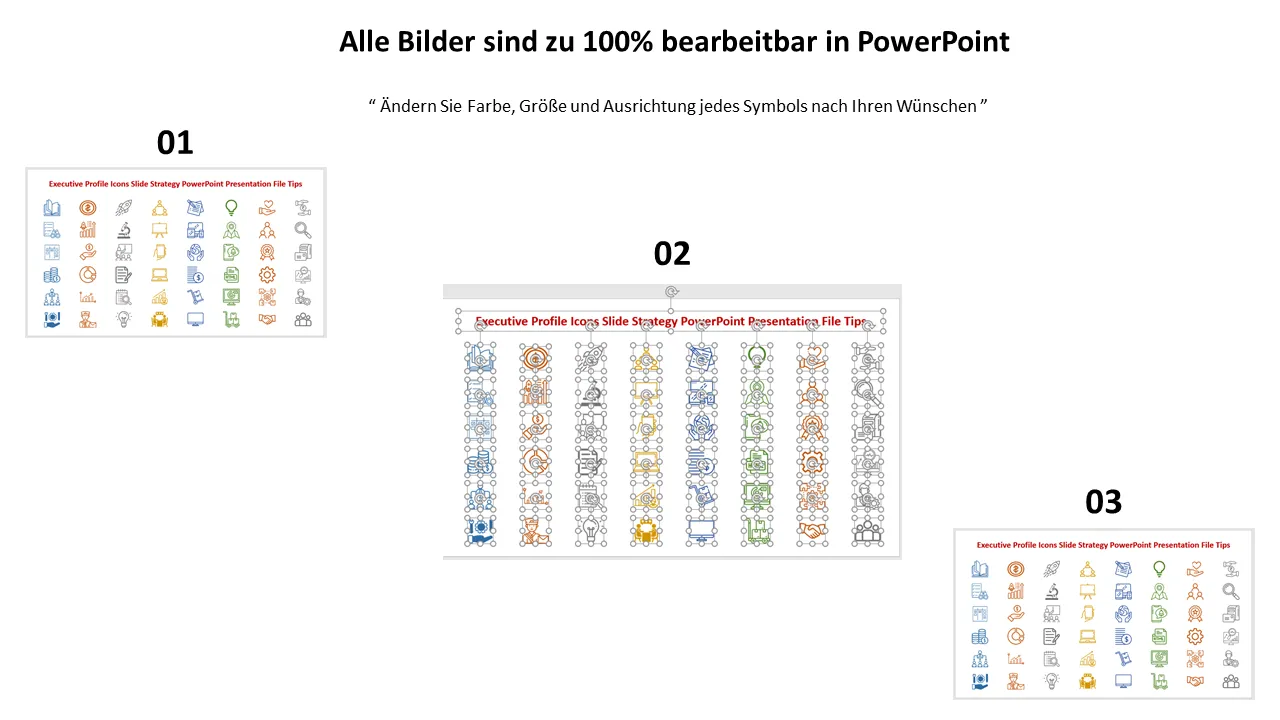 Executive-Profil-Symbole Folienstrategie Powerpoint-Präsentationsdatei Tipps Erklärung