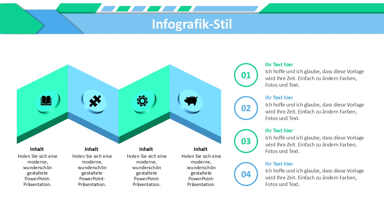 - Konsistente Designsprache auf allen Folien für zusammenhängendes Storytelling