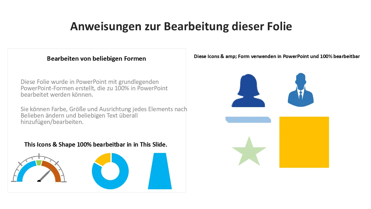 - Vollständig bearbeitbare Texte, Formen, Farben und Symbole für eine vollständige Markenanpassung
