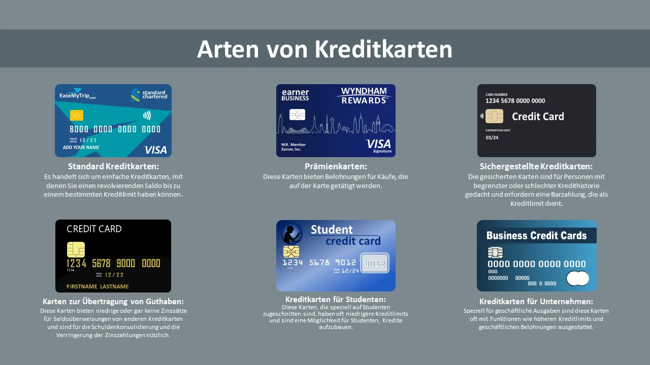 - Klare visuelle Hierarchie zur Erläuterung von Kreditkartentypen und ihren Vorteilen