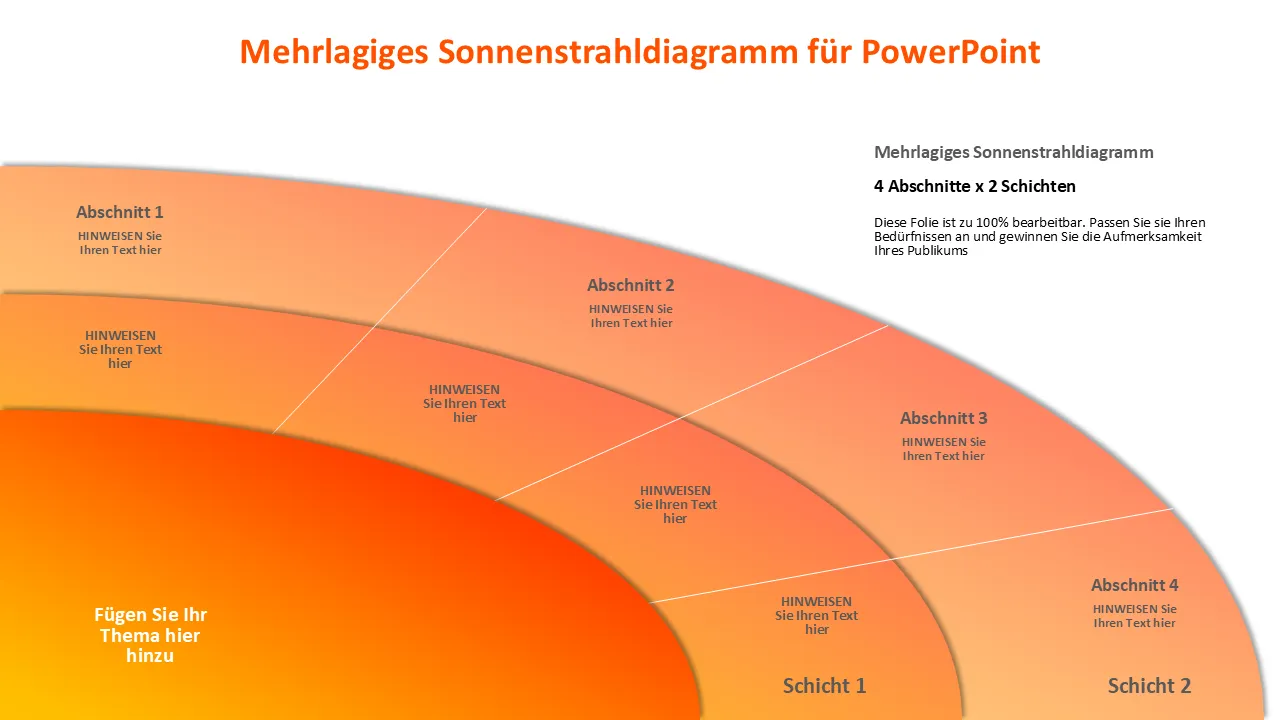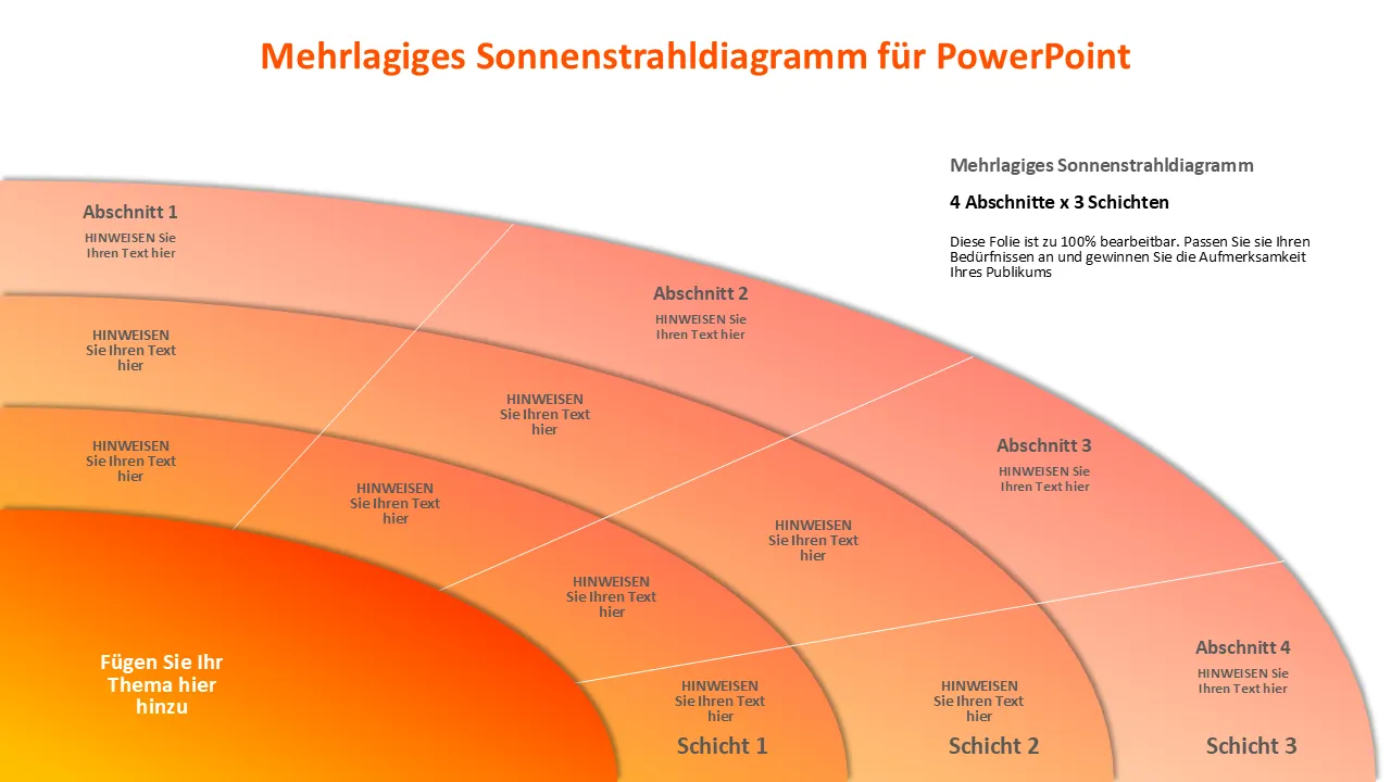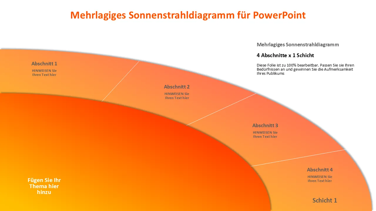 Mehrschichtiges Sonnenstrahldiagramm für PowerPoint-Erklärung