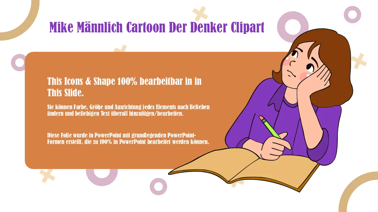 Mike Male Cartoon The Thinker Clipart PowerPoint-Vorlage für professionelle Präsentationen