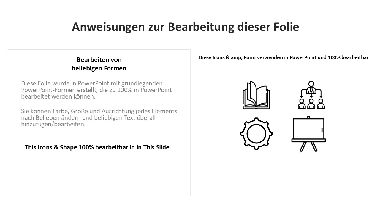 - Vollständig bearbeitbare Texte, Formen, Farben und Symbole für eine vollständige Markenanpassung