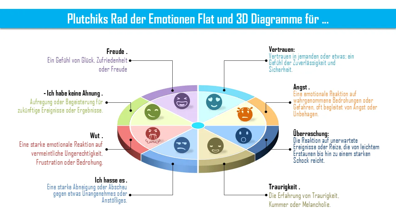 Plutchik Wheel Of Emotions Flache und 3D-Diagramme für ... PowerPoint-Vorlage für professionelle Präsentationen