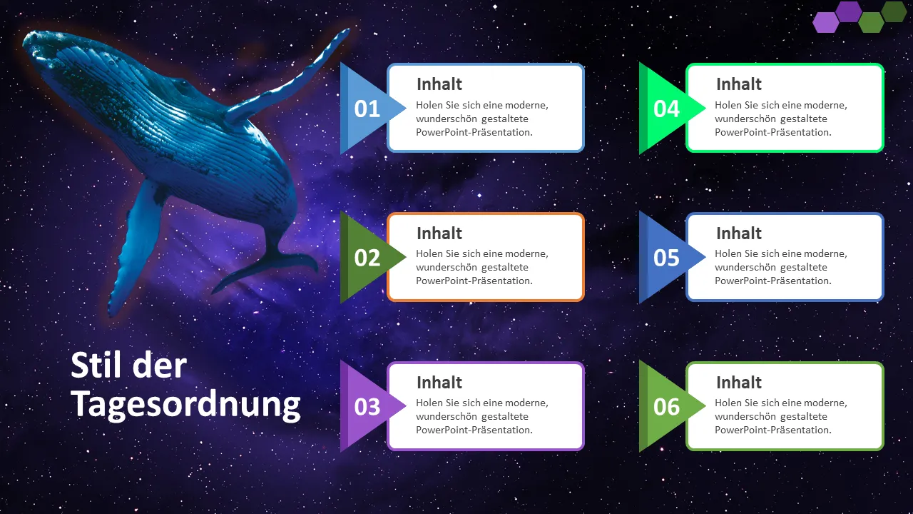 Erläuterung der Powerpoint-Vorlagen „Fliegender Weltraumwal“