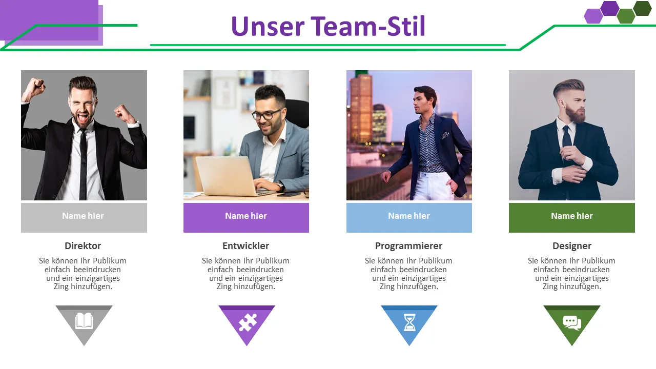 - Konsistente Designsprache auf allen Folien für zusammenhängendes Storytelling
