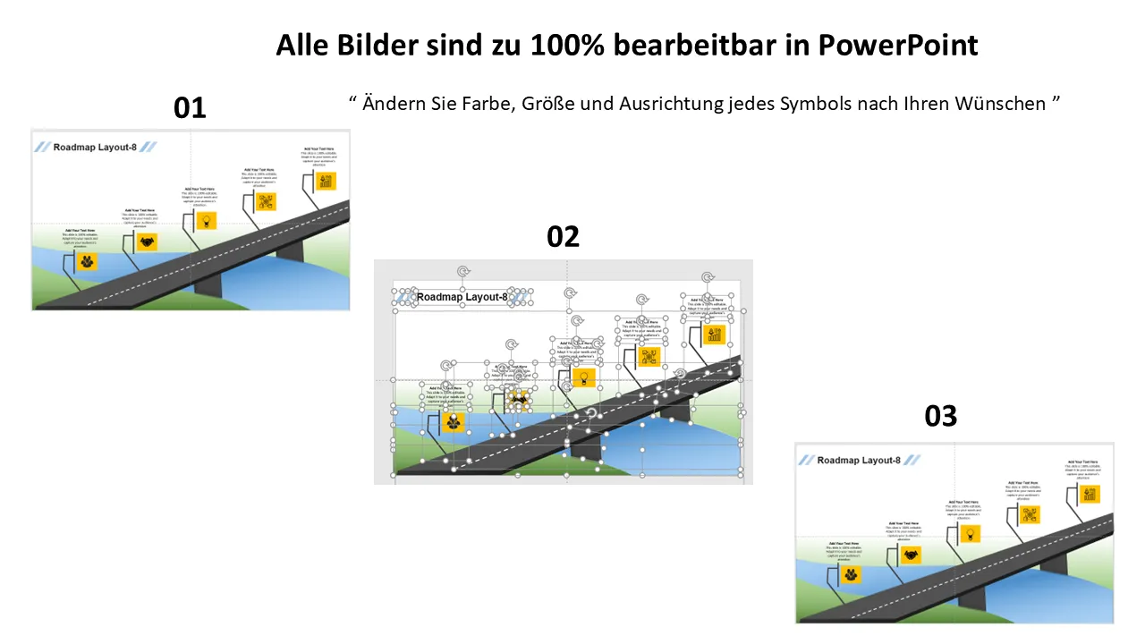 Merkmale von Roadmap PowerPoint-Folie für Geschäftspräsentationen