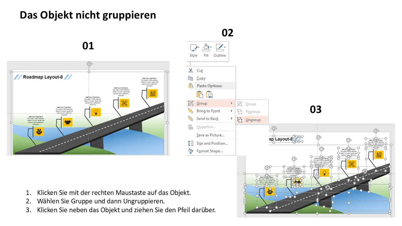 - Bearbeitbare Meilensteinmarkierungen mit Textplatzhaltern für wichtige Ergebnisse