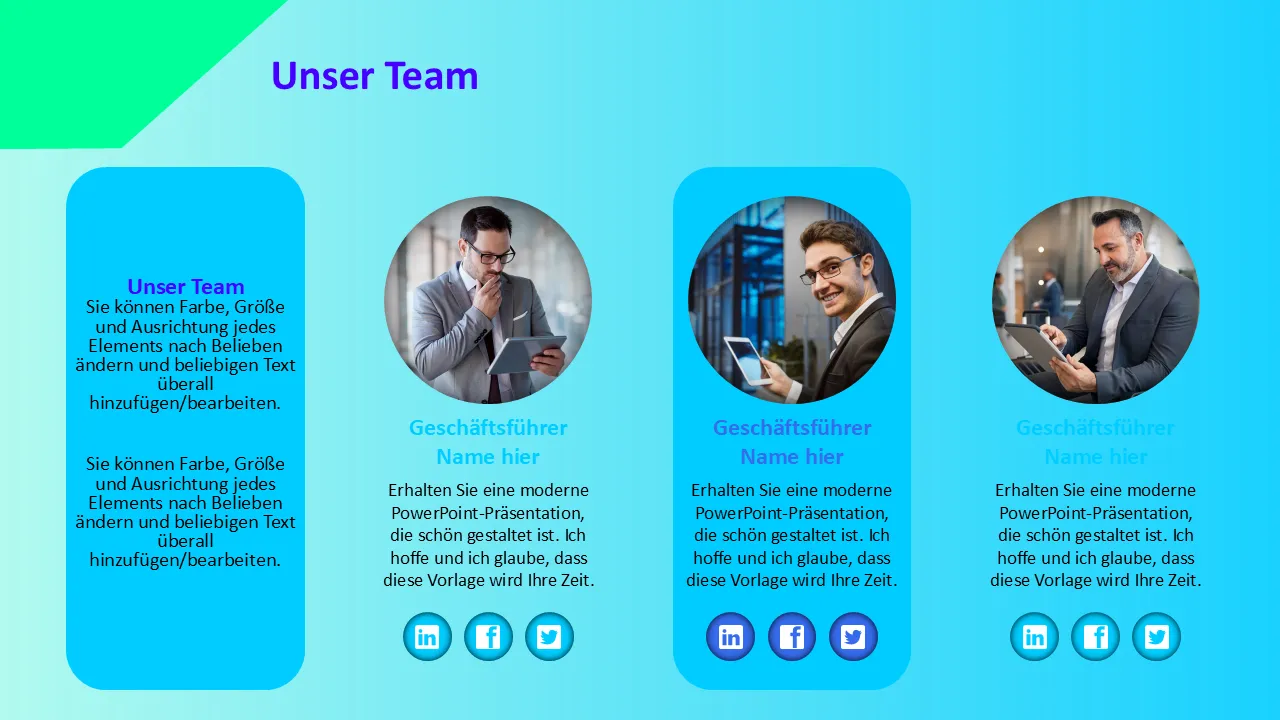 Erläuterung der PowerPoint-Vorlage „Unternehmensprofil“ vorstellen