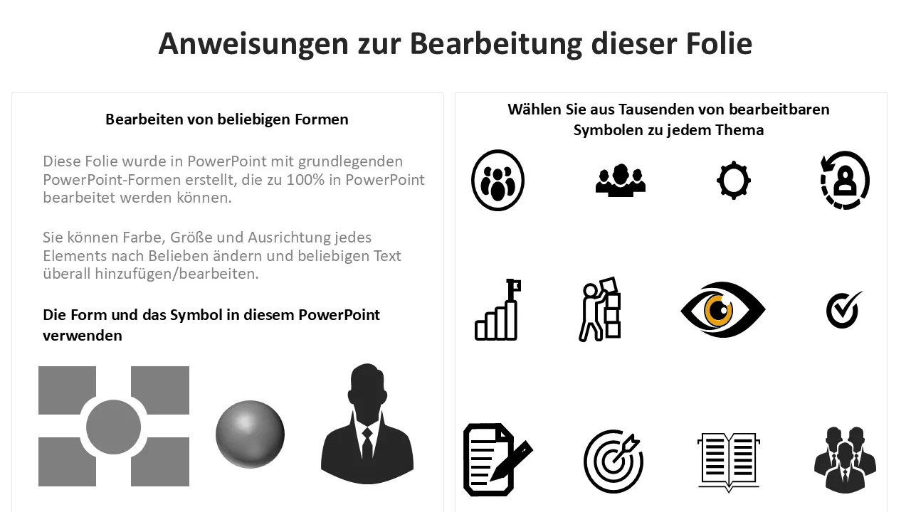 - Vollständig editierbarer Text, Formen, Farben und Symbole für eine vollständige Markenanpassung