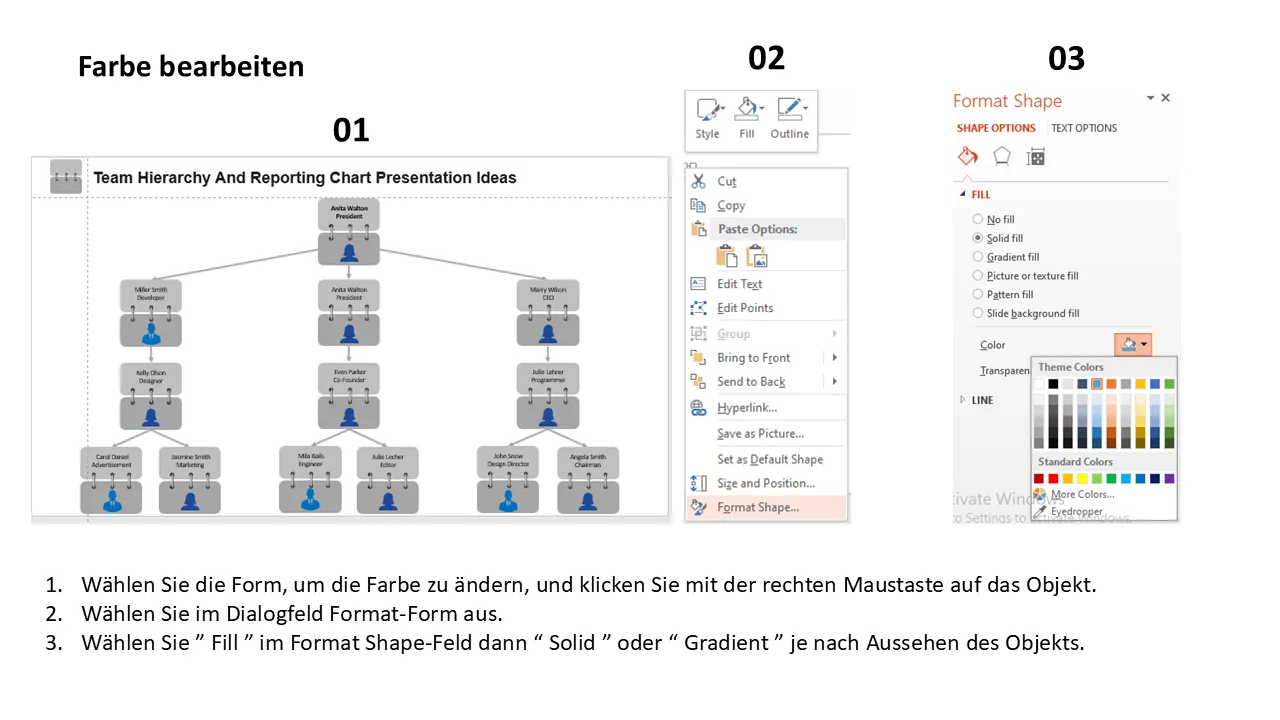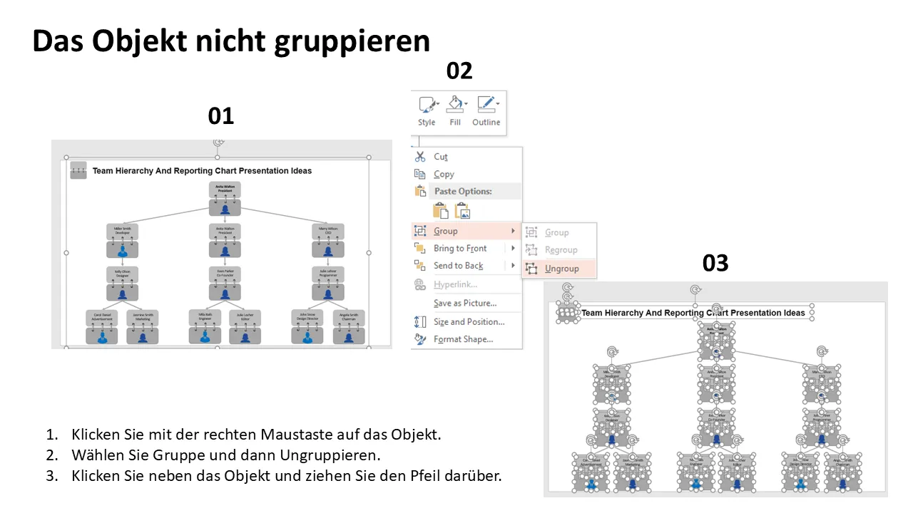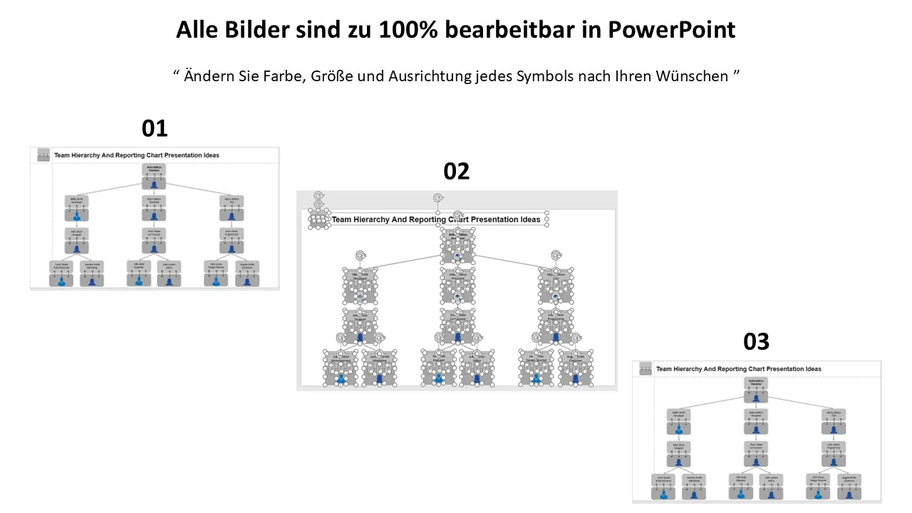 Ideen für die Präsentation von Teamhierarchien und Berichtsdiagrammen – Erklärung