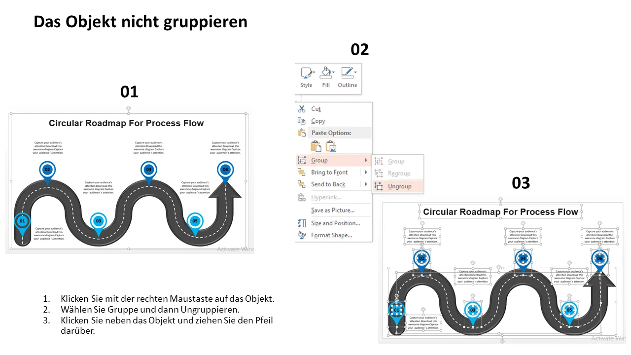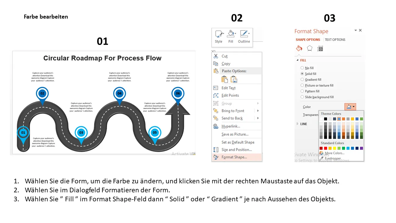 Erläuterung der PowerPoint-Vorlage „Circular Process Flow Roadmap“