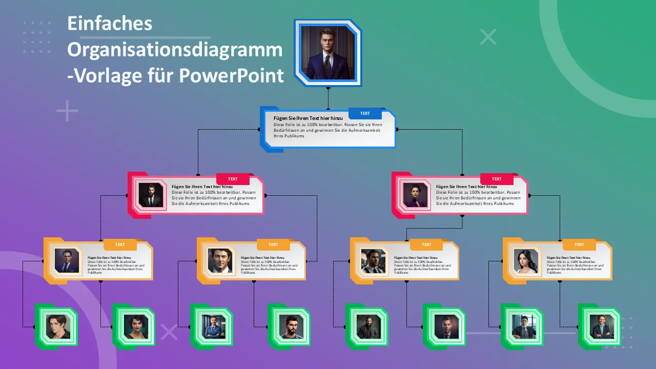Einfache Organigramm-Vorlage für PowerPoint für Geschäftspräsentationen