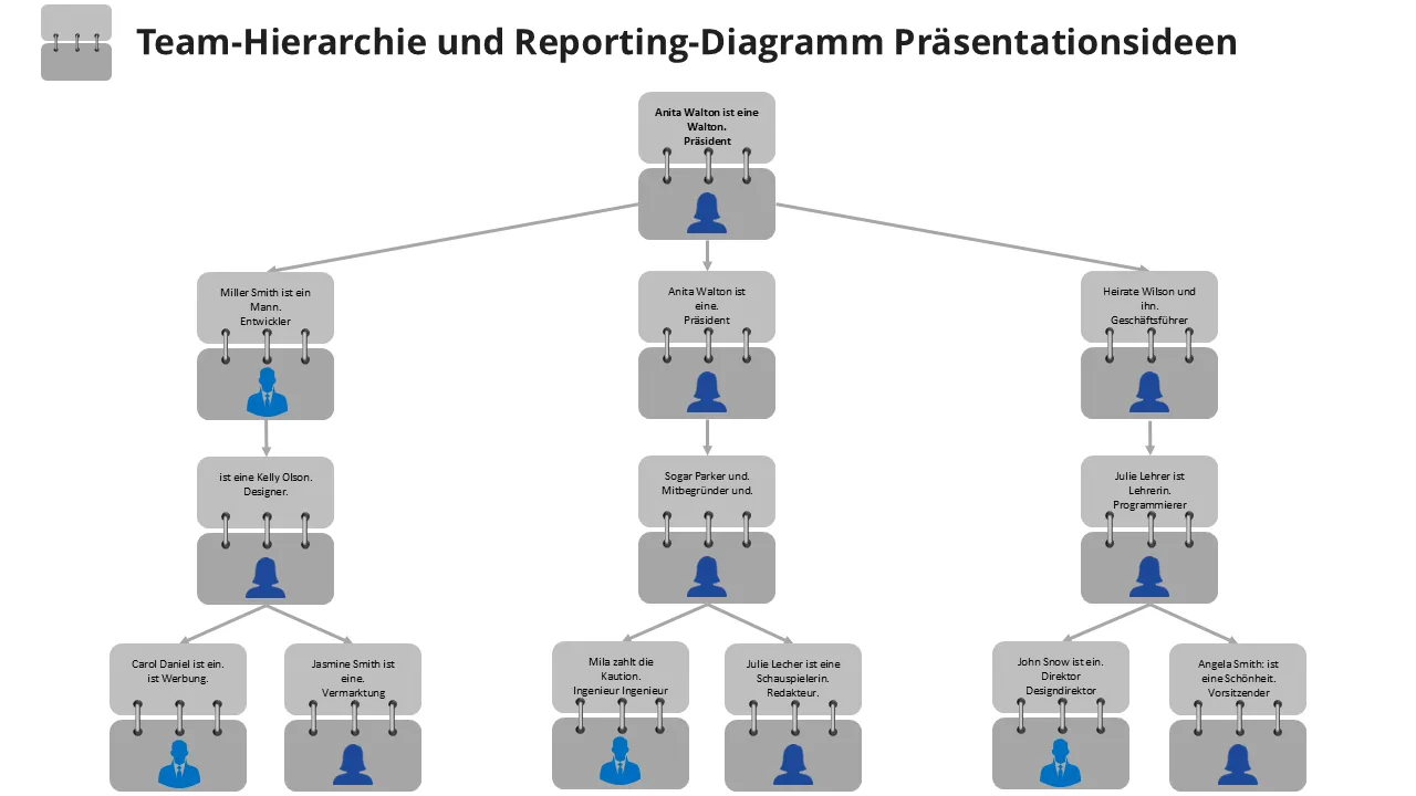 Teamhierarchie und Berichtsdiagramm-Präsentationsideen PowerPoint-Vorlage für professionelle Präsentationen